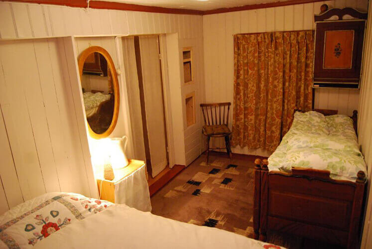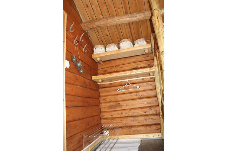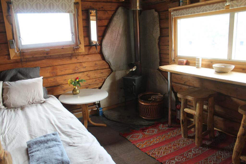 Cette chambre triple dispose d’un poêle à bois et d’une vue sur le chenil. Veuillez noter que la salle de bains commune se trouve à l’extérieur.
